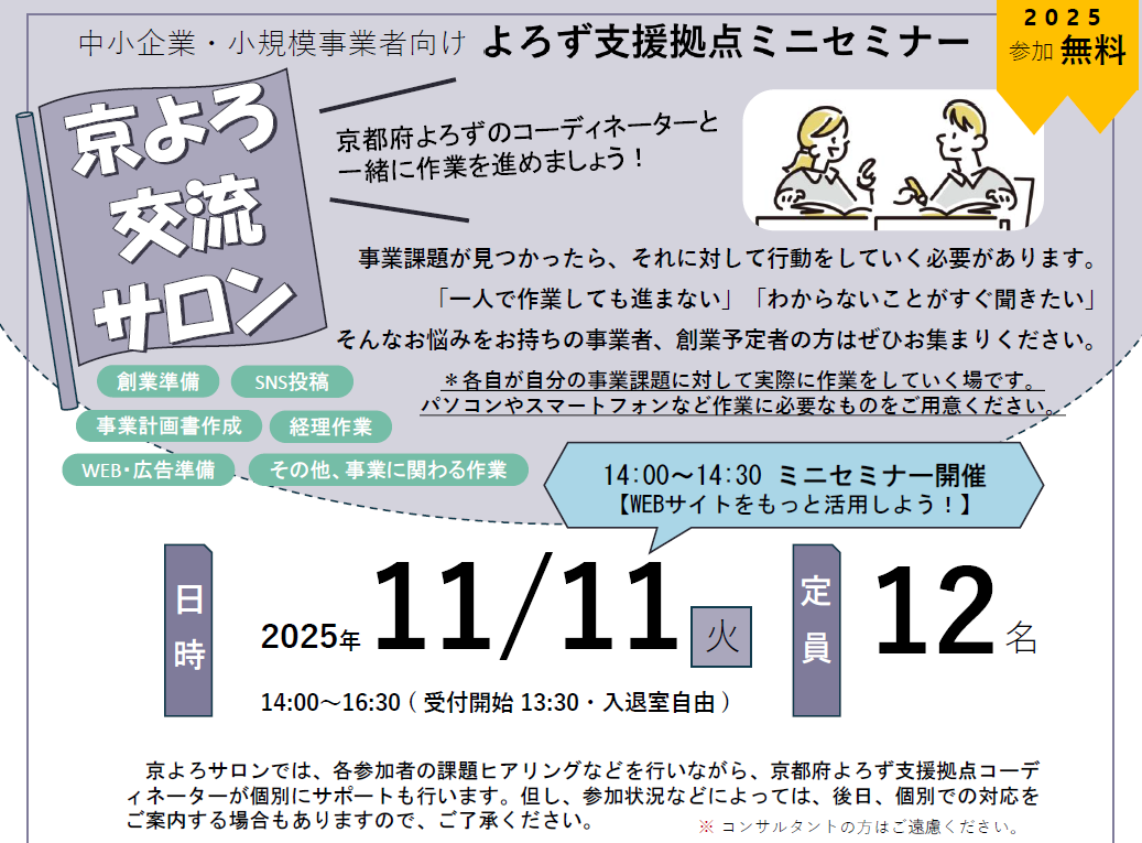 よろず支援拠点ミニセミナー【WEBサイトをもっと活用しよう!】14:00~14:30開催
