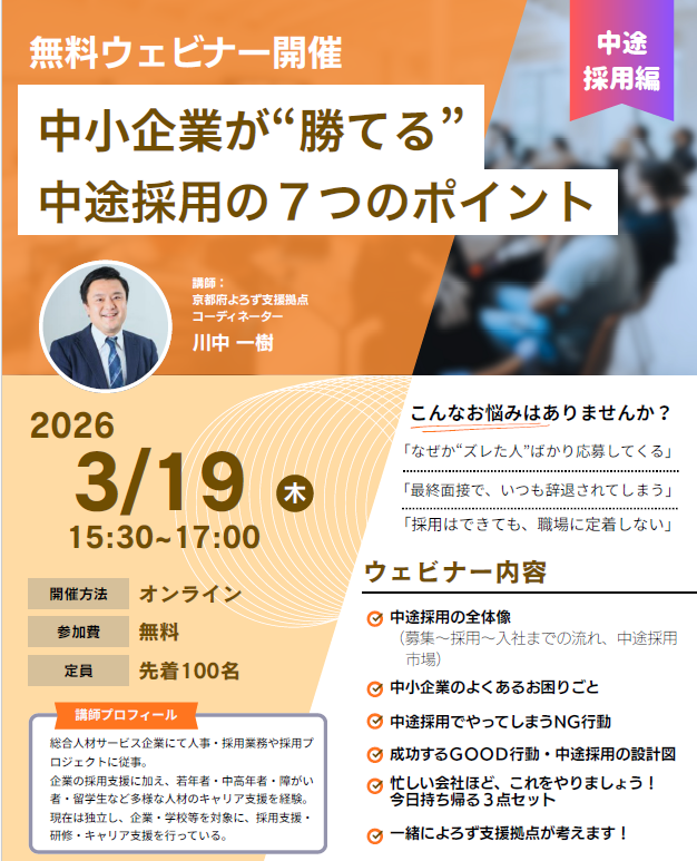 京都府よろず支援拠点では、随時開催の個別支援の「京都よろず塾」を開講しています。